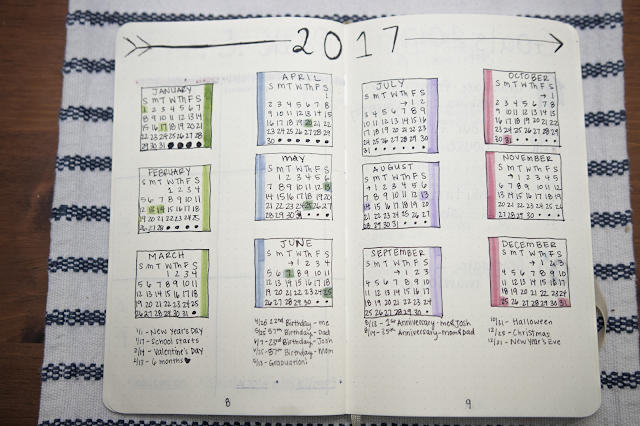 So in creating the 2017 future log, I made a MAJOR oops. I somehow though May only had 30 days, so I got all the way to December without realizing it. You’ll notice little arrows before the first of the month starting in June, that’s to remind myself to move all of it over. I’m trying to not let this bother me too much but it was definitely frustrating. I haven’t included everyone’s birthday yet, so don’t let it bother you if you don’t see yours on there.