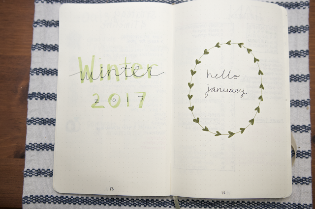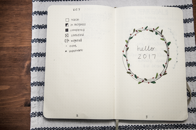 I promised my Instagram followers a post about my bullet journal set up for the new year and here it is. My awesome in-laws gave me the supplies I wanted to start my first bullet journal, a notebook, some fancy pens and hi-lighters. I mentioned in my first blog post that I had been using an old graph paper notebook to get the itch out of my fingers. But for Christmas, I really wanted to start a pretty journal that I could blog about for 2017. So in this post I will be sharing the pages that I have designed so far this year. I might make a post next week if the Plan With Me Challenge on Instagram causes me to make more than what I’ve designed so far. If there aren’t many new pages, I’ll just keep those posts limited to my Instagram.