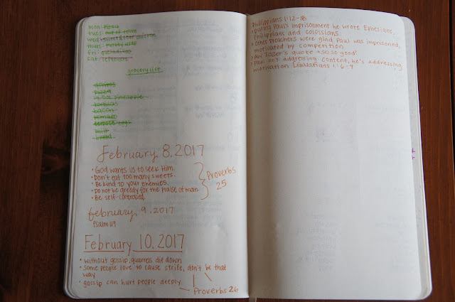 I’ve also started journaling a little bit about what I’m reading in scripture. I’m going through Proverbs on my own, which is taking forever because I’m not doing to well at reading consistently. I’m enjoying Proverbs because most of the things are conceptually easy to understand but really difficult to apply to life. Not gossiping is hard, and not starting quarrels is harder for me, and let’s not even talk about not eating too many sweets…