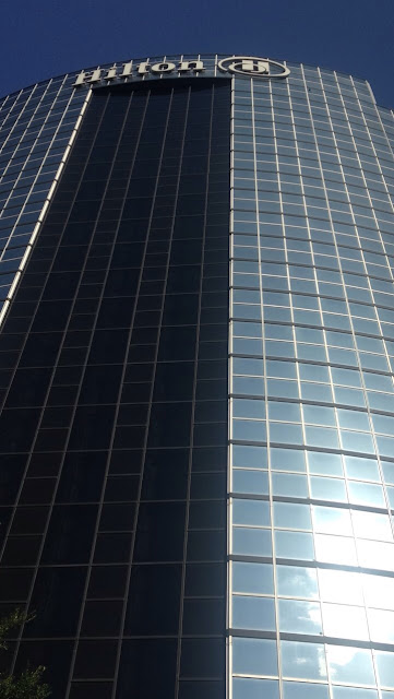 We stayed at the Hilton Dallas Lincoln Centre and we thought it was really nice! We booked our room through Hotels.com and got a pretty sweet deal: our room, free parking in the hotel garage and breakfast vouchers. We felt pretty fancy with our king bed and sit down fancy breakfasts. The first thing we did after throwing our stuff in our room was swim in the outdoor pool!