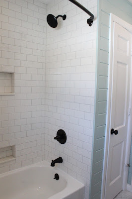 The shower will have subway tile which I think is so classic and simple. I’ve always dreamed of having a bathroom with subway tile. We’ll also add in black hardware like the picture below.