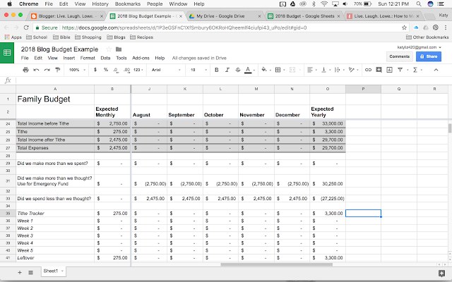 Now for part 3! I hope that part 2 will make a little more sense in this part. We left off making the tithe tracker for those of you who tithe part of your income. Next we’ll work on setting up each month and making totals for the end of the year.